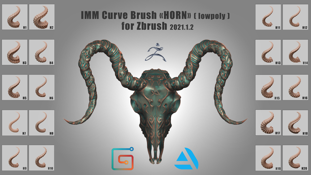 IMM Curve Brush «HORN» ( lowpoly ) for Zbrush