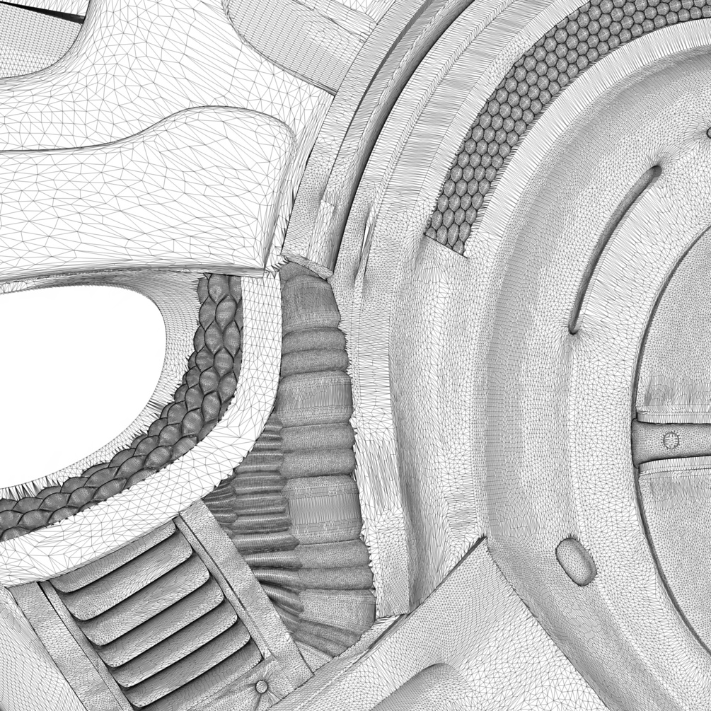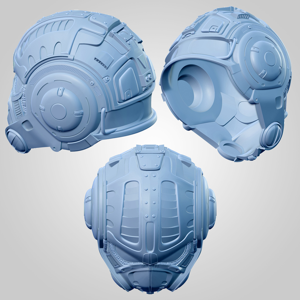 The model is suitable for 3d printing, has no textural and UV coordinates! The model was tested for geometry in the Autodesk Netfabb program, consists of 3 parts: the helmet itself and two glasses – 3.1 million polygons. The model is made approximately for the original model Mike Kime (Gears of War)