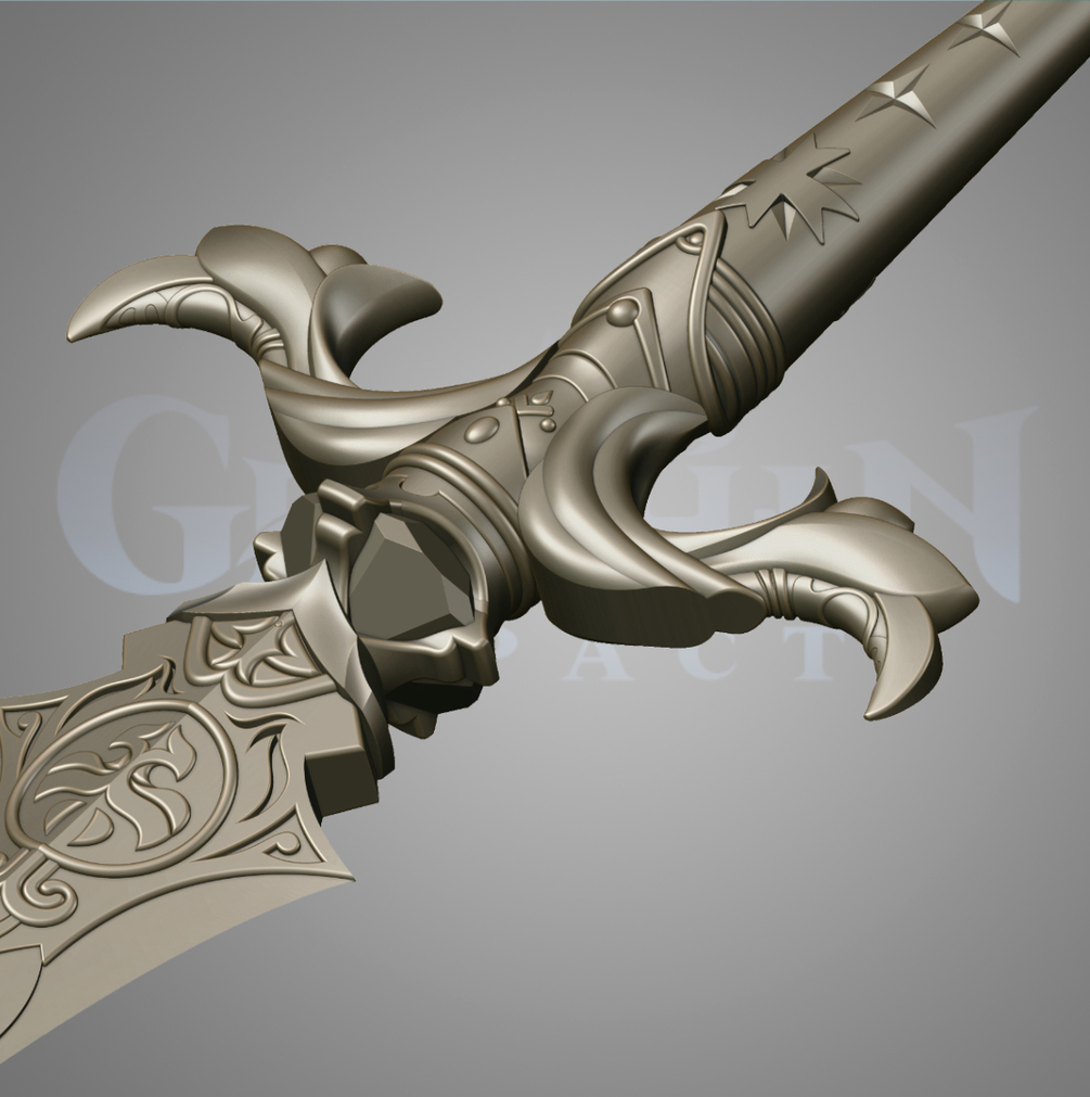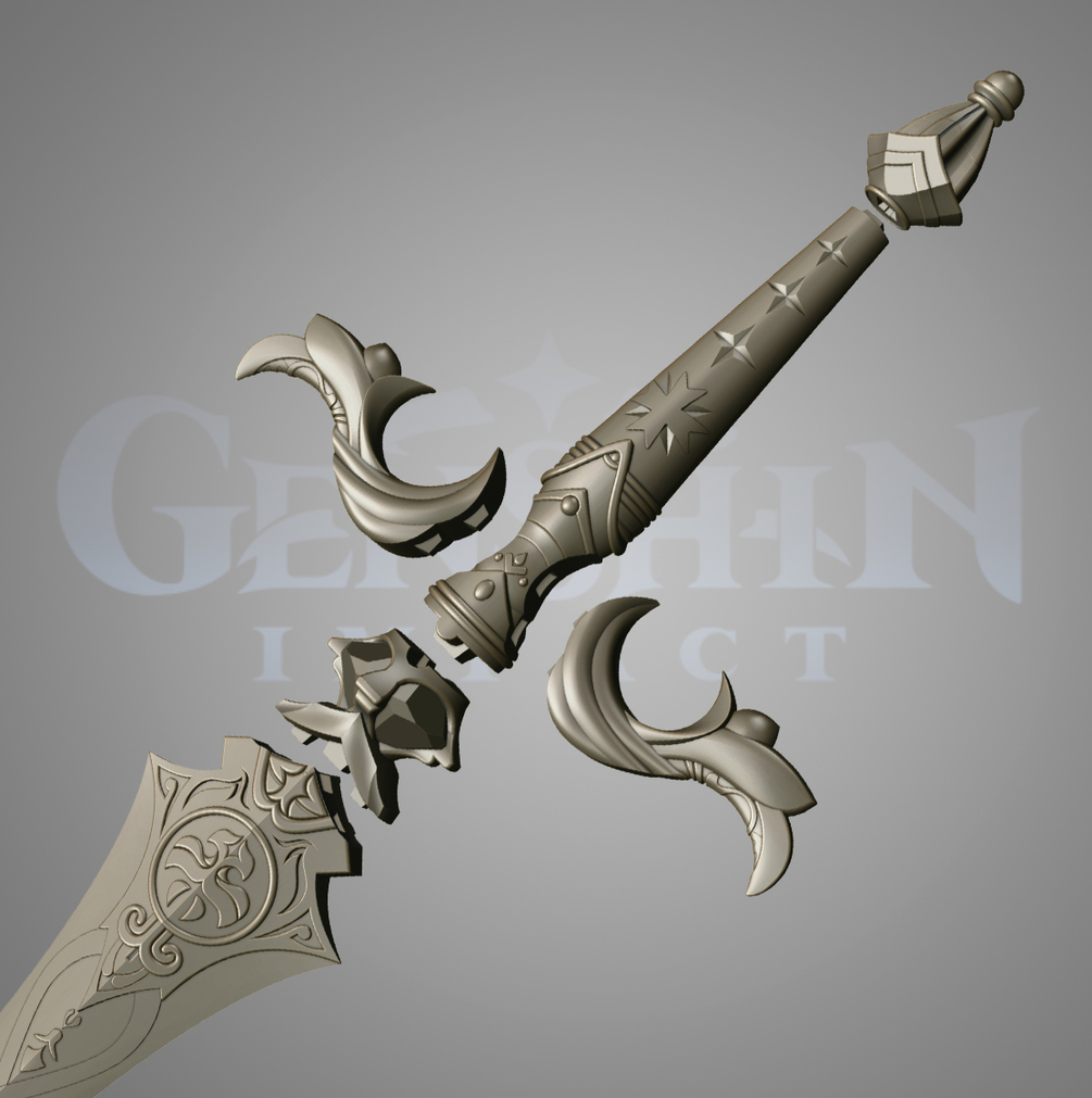A longsword used by a noble who ruled over Mondstadt. It was crafted with premium materials and master craftsmanship. For that reason, even after being passed down for generations, it is still as sharp as ever. Swordsmanship was once a mandatory skill for the nobles. However, it was for the purpose of refining wisdom and elegance, not for use in combat. Unfortunately, wisdom and elegance were eventually all but forgotten. Swordsmanship became a mere formality. Model for 3D printing, does not have UV coordinates and textures. The sword has a length of 1200 mm, divided into 6 parts, the blade remains one piece so that you can divide it at your discretion. The model has been tested in the program Autodesk NetFabb, and there are no polygonal mesh errors.