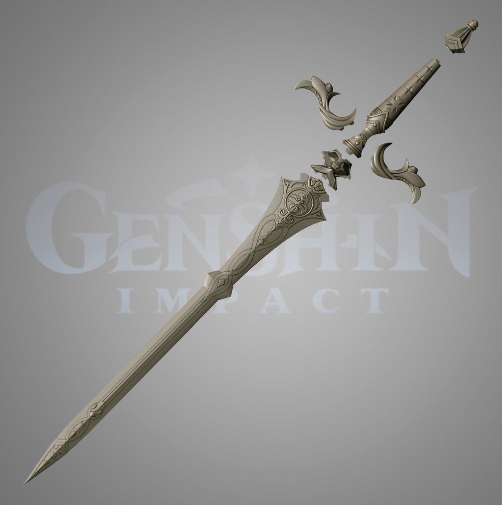 A longsword used by a noble who ruled over Mondstadt. It was crafted with premium materials and master craftsmanship. For that reason, even after being passed down for generations, it is still as sharp as ever. Swordsmanship was once a mandatory skill for the nobles. However, it was for the purpose of refining wisdom and elegance, not for use in combat. Unfortunately, wisdom and elegance were eventually all but forgotten. Swordsmanship became a mere formality. Model for 3D printing, does not have UV coordinates and textures. The sword has a length of 1200 mm, divided into 6 parts, the blade remains one piece so that you can divide it at your discretion. The model has been tested in the program Autodesk NetFabb, and there are no polygonal mesh errors.